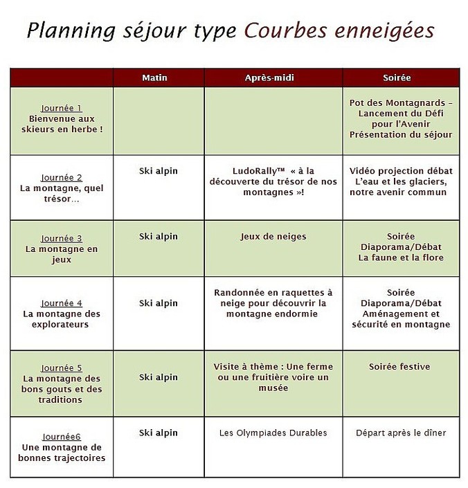 Dans des stations villages de moyenne montagne, nous vous proposons un séjour équilibré entre l’initiation au ski alpin et les spécificités de la vie naturelle et culturelle de nos montagnes. Toutes les activités proposées permettent aux élèves de glisser sereinement vers des objectifs durables : favoriser le bien-être et la santé, encourager le vivre ensemble et la solidarité et savoir évoluer dans un lieu de vie.