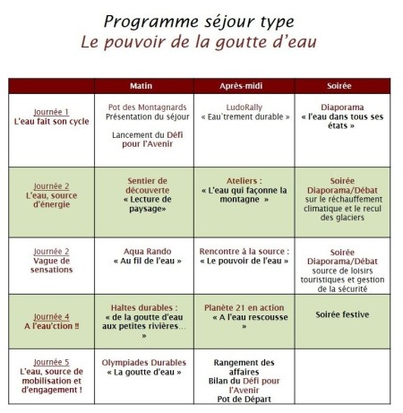 Je vole et je dévale ; je suis soleil le jour et lune la nuit, je suis sensation et donne la vie… Je suis l’eau, une ressource primordiale ! » Tout au long du séjour, les élèves accompagnent le voyage d’une goutte d’eau depuis sa création jusqu’à nos maisons. Ils se laissent guider par le courant porteur du développement durable pour analyser, expérimenter, jouer mais aussi se mobiliser pour l’avenir de notre chère planète bleue.